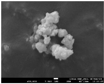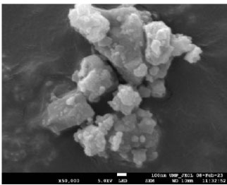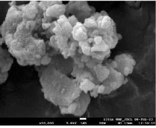 Figs. (3-5) present the morphology of the 50k cycles, 80k cycles, and 110k cycles nano POFA. It was found that all three types of nano POFAs’ particles tended to be aggregated with other particles and formed a bigger particle, which was similar to the result reported by Wi et al. [36]. Apart from that, the 50k cycle nano POFA particles had an angular shape with more edges, but the 80k cycles nano POFA had an angular shape with fewer edges than the 50k cycles. The 110k cycles nano POFA’s particle was between angular and circular. Comparing the particle size among these three types of nano POFA, the 110k cycles nano POFA’s particle seemed smaller compared to others, according to the result of the particle size analyzer.
