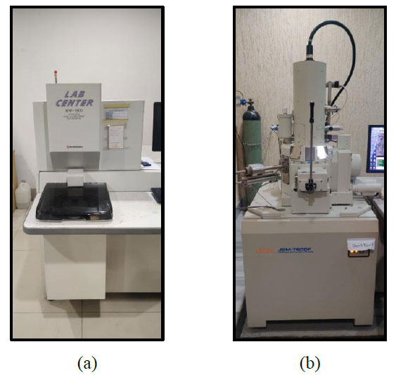 (a) X-ray Fluorescence (XRF) and (b) Scanning Electron Microscopy (SEM) facility at NCE laboratory, BUET.