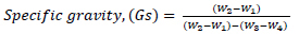 where W1 is the mass of empty density bottle; W2 is the mass of bottle + dry soil; W3 is the mass of bottle + soil + Liquid; W4 is the mass of bottle + liquid