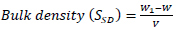 where W is the weight of the empty mold; W1 is the weight of empty mold + wet sample; V= volume of the sample.