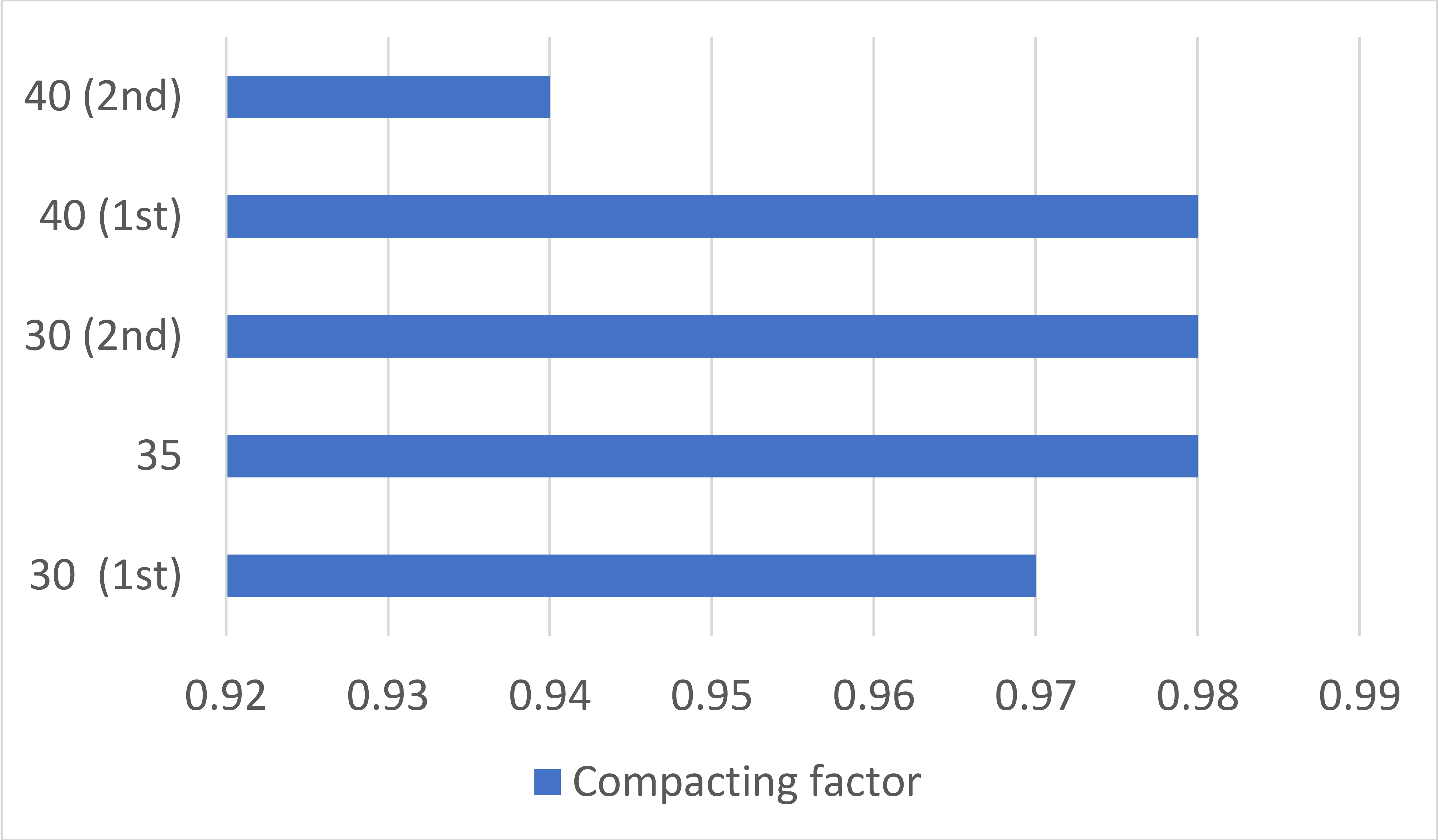 Also, Figure 5 and Table 6 present the results of compacting factor test of control and ceramic tile concrete. The result of the compacting factor test of concrete which bears 0% CTCA was 0.97 while the concrete with 20% CTCA was 0.94. The compacting factor shows that control concrete is more workable than ceramic waste concrete. It was found that both the slump test and compacting factor for both the concrete made with ceramic tile and the control concrete shows that, the degree of workability was very low. Therefore, this falls within the range specified by BS 1881:part 103: 1983 [48].