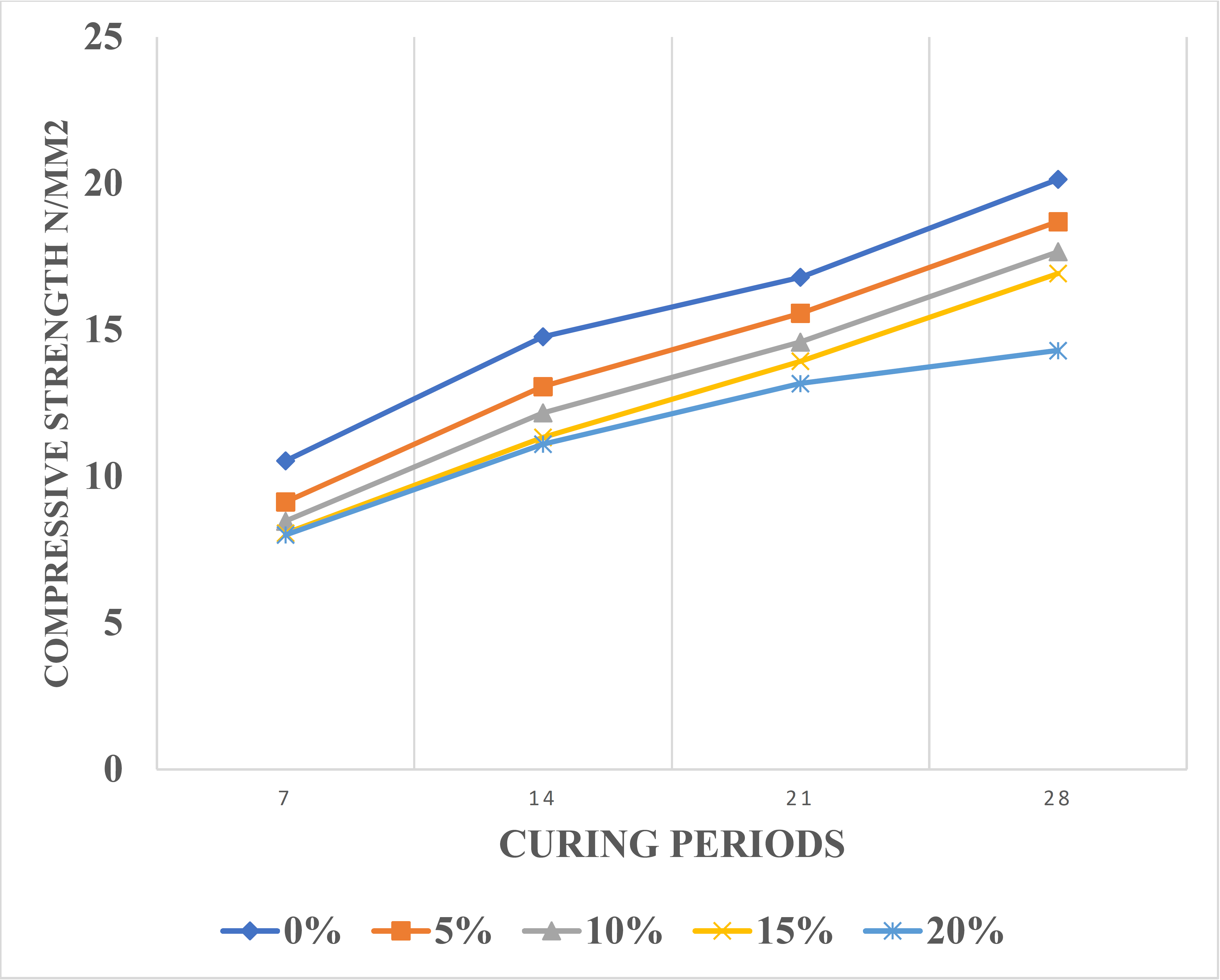 A total of 60 hardened cubes (12 cubes for control specimens and 48 cubes samples) with 150 mm x 150 mm x 150 mm dimensions of 5 different series were produced. The cubes were tested for compression at 7, 14, 21, and 28 days of curing age. From each of the series, 3 cubes were tested for compressive strength on each crushing day. The compression tests were conducted on a universal hydraulic press of up to 1500 kN at the compression.