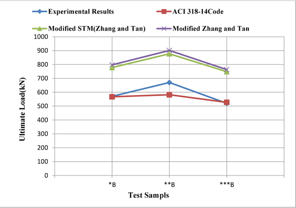 - The modified STM developed by Zhang and Tan in November 2007, that includes the effect of size factor, overrate ultimate loads as compared to test results except B-HS-M-Hy1-ρw 6 gives in test result higher than modified STM. The X ' is 1.32, the SD is 0.27 and the CV is 0.2.
