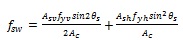 θw: angle amid the horizontal axis of beams and the web reinforcement at the crossing of the reinforcement and the diagonal strut.