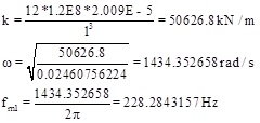 Eq. (7) is obtained. Where, U, F, K, V,, E, I, Z and L are displacement, force (mass of system), rigidity, volume, density, Modulus of Elasticity, Moment of Inertia, a coefficient and length, respectively.