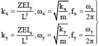 are expressed (Eqs. 1-2). Where, Z, E, I, L, m and x-y are a coefficient, Modulus of Elasticity, the moment of inertia, the profile length, mass and the axis directions of the system, respectively. When these expressions are written in the frequency equation for prototype and model,