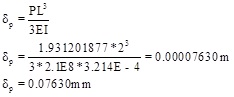 Calculation of the displacement value of the 1/2 scaled model by using the displacement value of the prototype box cantilever beam is as follows. If written Ip = 3.214E - 4m4, Im = 2.0009E - 5m4 Table 4 and p = 0.08377mm Table 8 in Eq. (12);