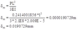 The solution steps taken considering the above mentioned data are as follows. With the help of displacement equation for cantilever beam;