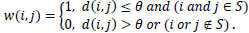 Secondly, a distance threshold value θ is defined. If the distance d(i,j) ≤ θ, then there is graph connectivity from node i to j and they are neighboring nodes, and vice versa. Note that we only need compare the distance between two signalized intersections with the threshold, i.e. i, j