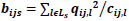 In the connectivity graph depicted in the last section, e.g. Fig. (1c), there are solid lines and dotted lines. The solid lines denote two neighboring nodes (signalized intersections) which are adjacent and connected by a link. So the saturation degree, traffic volume and capacity of approach lanes at downstream signalized intersections are the variables of belief. Let Ls represents the set of lanes of the direct paths (solid lines) from intersection i to intersection j; xij,l represents the lane’s saturation degree; qij,l represents the lane’s traffic volume; cij,l represents the lane’s capacity. Then, the belief of direct path from node i to node j is bijs and defined in Eq. (3 and 4) as:
