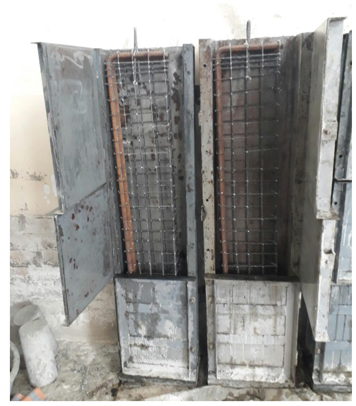 The steel molds were designed for casting four hybrid deep beams for each batch as shown in Fig. (2). The inside dimensions for each mold were 1500mm length,350mm height and 150mm width. The molds were designed to cast the beams vertically due to the difficulty of casting layers in a horizontal state. The front cover of the mold face of dimensions 1500mm×350mm consists of three plates. The lower plate was fixed to cast the first layer while the two other plates above were movable (doors) to cast the two other layers. Each door was closed before casting the layer of beam in it.