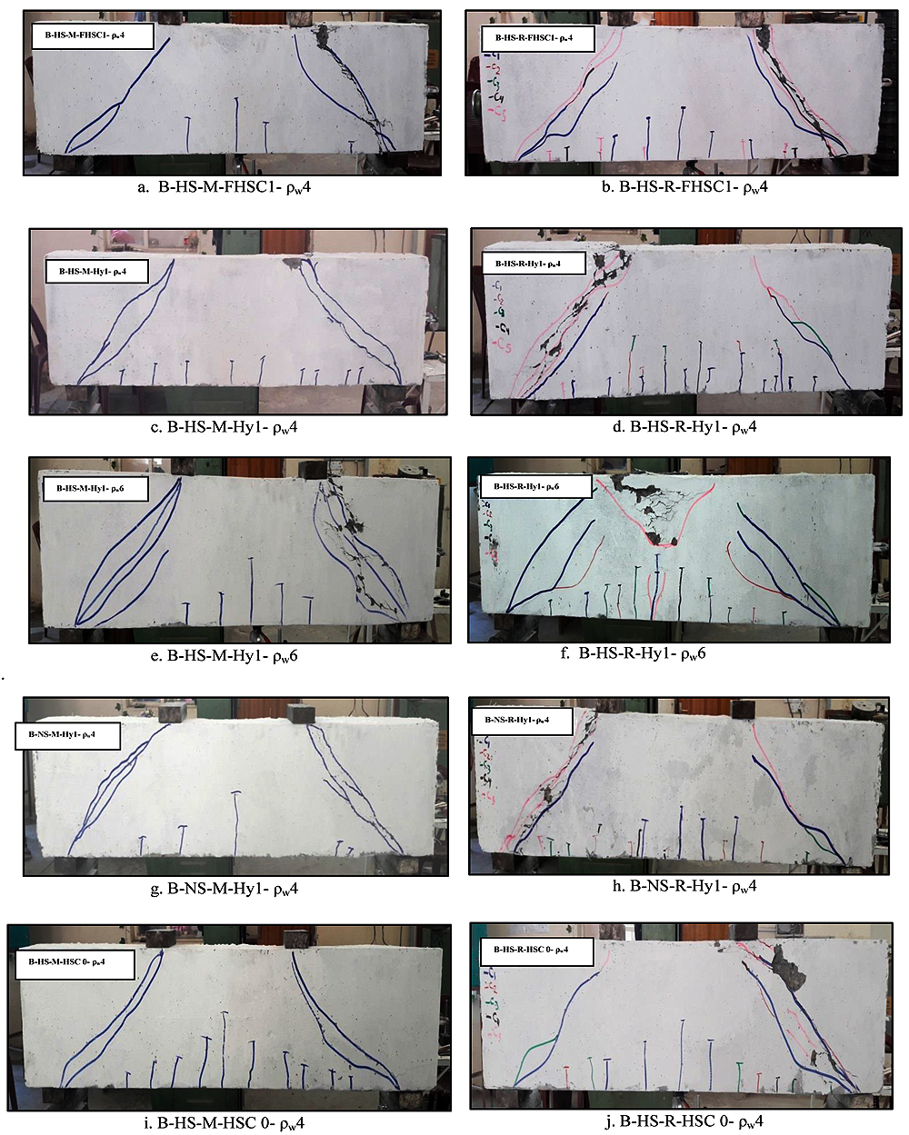 Figs. (3a-j) shows mode of failure and the crack pattern of the tested deep beams after testing.