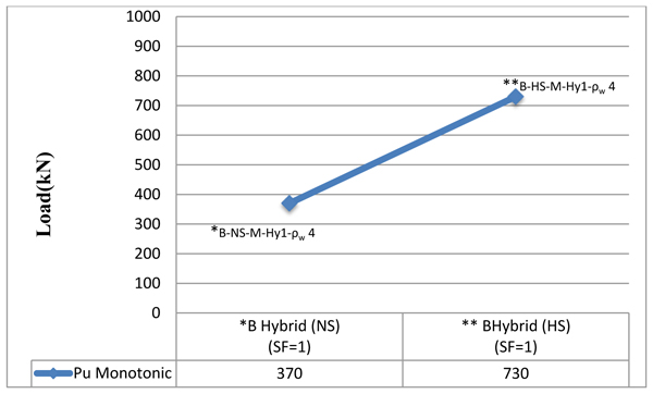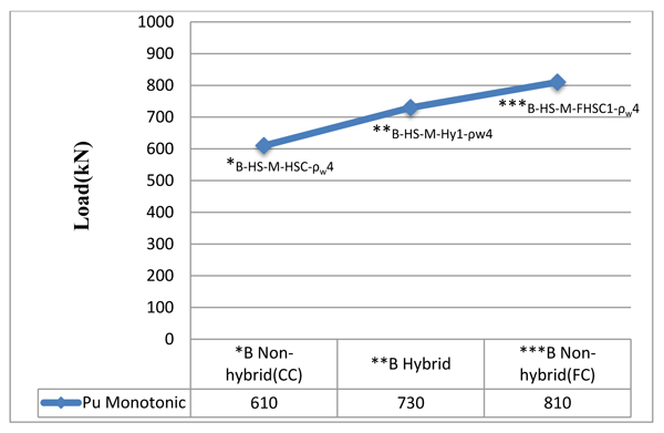 - The ultimate load of beam increases with existence SF, for beam tested under monotonic load. The increase for beam cast from FHSC (SF 1%) is 32.79% and for the hybrid beam (SF 1% in shear span only), it increases by 19.67% as compared with non- hybrid beam cast from HSCC. The increase in ultimate load of FHSC deep beam is 10.96% as compared with hybrid beam.