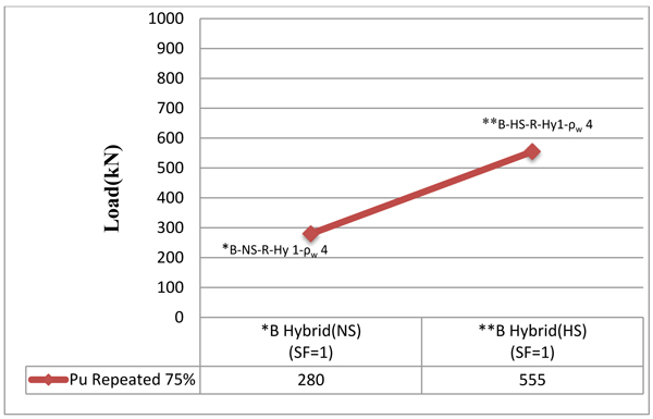- The ultimate load of HSC of beams tested under monotonic loading is 97.3% for hybrid beam higher than of an identical NSC. Therefore, the concrete compressive strength significantly effects on the capacity of the tested beam. In repeated loading, the increasing of the ultimate load for HSC beam is 98.21% as compared with NSC.