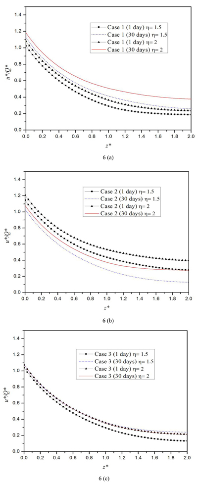 Ai et al., [9] investigated the influence of the stratification of the soil on the response of the pile at different times. Two different cases, namely, Case 1 corresponding to a single layer half-space and Case 2 a stratified soil consisting of three isotropic layers with the shear moduli ratio equal to µv1 : µv2: µv3 = 1:2:3 are considered in their research, wherein the subscripts 1, 2 and 3 represent the first layer, second layer and third layer, respectively. Other parameters for the pile-soil system are as follows: The pile length-diameter ratio L / d = 20; the soil Poisson’s ratio; h = hv = 0.3; the pile-soil Young’s modulus ratio; Ep / Es = 300; the coefficient of permeability kh = kv = 1.2 10-6 ms-1; the soil layer’s thicknesses for the second case are h1 / d = h2 / d = 10 ; the soil stiffness ratio is η = Eh / Ev. In this example, the non-dimensional vertical displacement and time are defined as