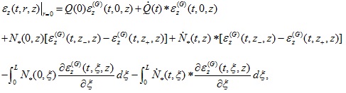 In view of the forces acting in the extended layered TISS, and with the fundamental solution for the layered TISS, the vertical strain of the extended layered TISS at the center of