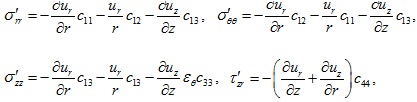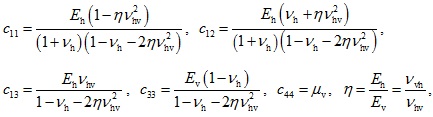 where ur and uz are the displacement components in r and z directions, respectively. The parameters c11 - c44 in equation (3) denote the elastic constants of the TISS and they can be expressed as follows (Eq. 4):