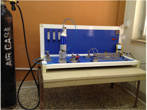 The used laboratory reactor and schematic diagram of the experimental setup are represented in Figs. (2 and 3), respectively. The NOx photodegradation chamber and all other accessory components were designed according to the ISO 22197-1:2007 standard [32]. The NO inlet concentration and gas flow were modified to satisfy the research purposes and test requirements. The photodegradation chamber had a rectangular shape with dimensions of 30 cm x10 cm and was made of non-absorbing plastic. The system was completely sealed to prevent inadvertent leakage of the NO gas/air mixture. The gas detector device was from RAE Systems by Honeywell-USA, San Jose. The detection limits were 0-250 ppm for nitric oxide, 0-20 ppm for NO2 and 1-1000 ppm for VOCs. This device is simpler than the ordinary gas analyser used by others [18, 25] and is intended to facilitate the experimental setup with lower costs but sufficient accuracy as stated elsewhere [33].