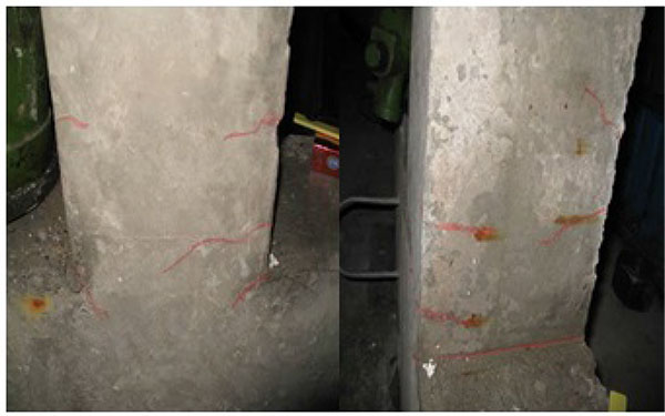 As can be seen from the above table, the original damping ratios of the four specimens are about 2%, which coheres with the measured range of damping ratio of RC structures. Before the cyclic test, the damping ratios of No.3 and No.4 specimens are slightly smaller than the ones of No.1 and No.2 specimens without immersion, which may be caused by the lubricating effect of water in the pores after the immersion of specimens. The damping ratios increase significantly after the cyclic test due to micro-cracking in the RC columns; however, for the specimens with immersion, the rate of change of damping ratio is much larger than that of the specimens without immersion. According to Fig. (8), the loading rate during the test cannot be fast for it is acknowledged that cracks in concrete develop very rapidly under high loading rate with immediate speed. According to micro hydrodynamics, there is a significant increase in the viscosity of free water in the small-size cracks. When the cracks develop, an opposite force is applied by the viscosity of free water, which hinders the development of cracks. Therefore, the damping ratio reflects a growth trend for wet specimens after the cyclic loading.