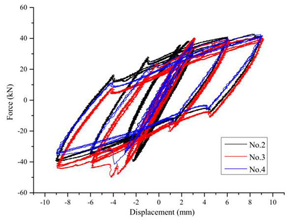 The hysteretic curves of No.2-No.4 specimens are shown in Fig. (12).