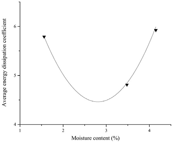 As can be seen from Fig. (14), with the increasing moisture content, the average energy dissipation coefficient decreases first and then increases, that is to say, specimens’ energy dissipation capacity first decreases and then increases with the increase of moisture content. On the basis of the experimental data, a formula expressing the relationship between the average energy dissipation coefficient and the moisture content is developed as follows: