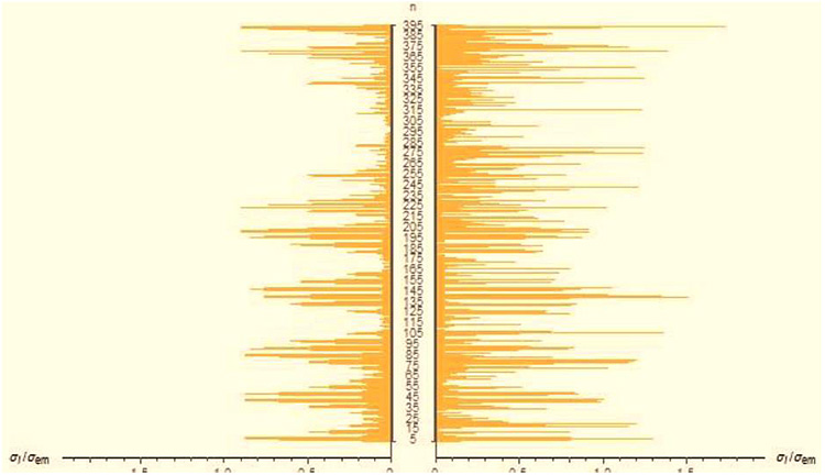 The negative effect of small length imperfections on building safety is obvious as described in the analyses above. It is clear that the size of length imperfection of member and numbers of the imperfect members are main factors that affect the structural safety in a negative manner. Even in case the size of imperfections of member in its length (ΔL) and the number of the imperfect member is kept constant, the issue of which members to be assigned imperfections in their length also affects the results. In order to investigate the effect of the selection of imperfect members, the analyses were repeated under the same length imperfection (ΔL) and under the fixed number of imperfect members only by changing the members to be assigned with imperfections randomly. The analyses were repeated under these fixed values (length imperfection size ΔL) only by changing the components to be assigned with deficiencies for 500 times; and the number of the components which exceeded their capacity limit values are shown in histogram curve in Fig. (12).
