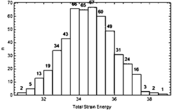 Fig. (12) shows histogram of total strain energy of the trusses. As seen from the Figs. (12 and 13), the positions of the imperfect members affect the DLGST behavior. These show that the response of DLGST is probabilistic, even if some of the uncertainties (number of imperfect members, size of length imperfection) are kept constant. These Figures show that the selection of imperfect member has a remarkable effect on the structure safety.