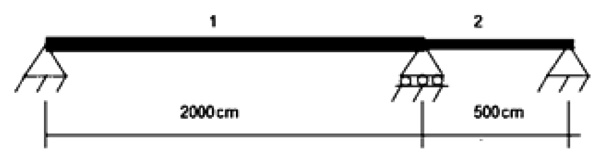 To verify the computer program which considers length imperfection prepared for this study, an example shown in Fig. (2) is used. A closed form of analytical solution of this problem is known. The system consisting of two bars with 2000 cm and 500 cm lengths between the two structural bearings have been taken into consideration in Fig. (2). The cross-sectional areas of the bars are accepted as 300 mm2 and 200 mm2, respectively. The elastic modulus is accepted as 200 GPa. It is assumed that the thin bar is fabricated with the length of 375 mm, which is too short to exact fit. It is assumed that structural members are forced to fit to support position as in the project.