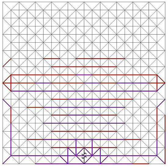 The DLGST model in Fig. (3) has been reanalyzed for 5 mm and 10 mm length imperfections separately, while keeping 110 imperfect members and position of imperfect members constant. In the present study on DLGST, 110 different members were assumed to have length imperfections. The issue of whether imperfect member being too short or too long is defined by the program randomly. Fig. (7) shows the position of imperfect members which are assigned by the computer program. The red bars show the members that are shorter than the ideal size, whereas the purple bars show the members that are longer than the ideal size.