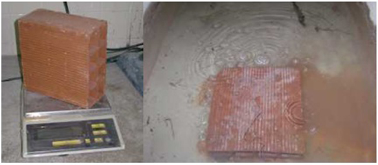 The equipment used for such determinations were balanced with a resolution of up to 5 g, oven with adjustable temperature and a tank for submersion of the samples. The number of samples established by the standard to determine these characteristics is equal to six specimens.