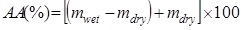 The water absorption index (AA) of each specimen was calculated using the following expression in Eq. (1):
