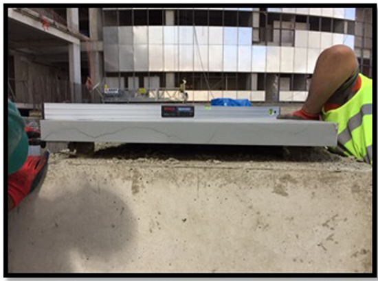 Placement of the lower plate and preparation phase: After the concrete pouring, the lower steel plate to be used at the bottom of the isolator is installed (Fig. 14). The steel plates to be used at the top and bottom of the isolator in the project are given in various sizes and thickness according to the size of the isolator. It should be important using cold-sawing in water-jet CNC machines while cutting these plates. Furthermore, care should be taken to drill these holes in accord with the diameter of the bolts to be used with the cold drilling machine. Cold-sawing and cold-drilling reduce the tensile ratio and prevent to occur thin cracks. After the plates are cut, the plate surfaces must also be lathed (in one side) and straightened. Small ripples on the plate surface during the rolling phase will prevent to fix in the place of the isolator and will render the system unusable. In addition, the small gaps on the plates must be eliminated. The laminate process is performed until a smooth surface is obtained. After this process is conducted, shot blasting on the plates should be done to increase the resistance against corrosion and to prevent rust in seasonal conditions. Fast-acting double-component zinc based epoxy primer (Shop primer) and two layers of zinc based paints were also applied on the plates in the site. As shown in Fig. (15), before the grouting of the lower steel plate is poured, the surface slope, which must be achieved, is provided by means of the screws previously welded on the dowels.