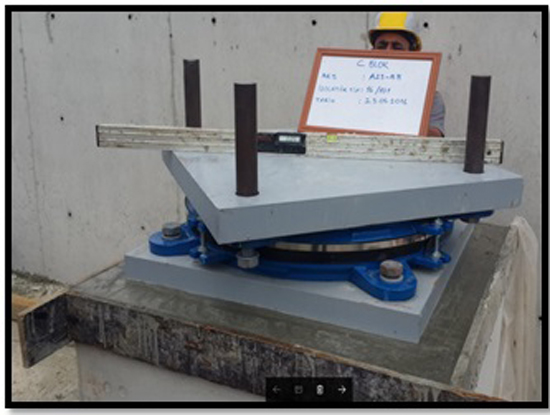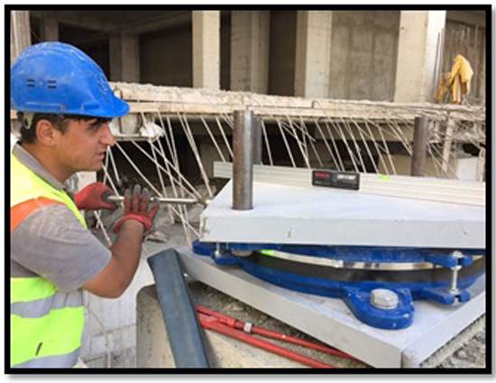 The installation in the construction-site of seismic isolators is an application that needs to be done precisely. The installation steps of the steel plates placed on the upper and lower sides of the isolators and isolators used in the Erzurum Health Campus are given below: