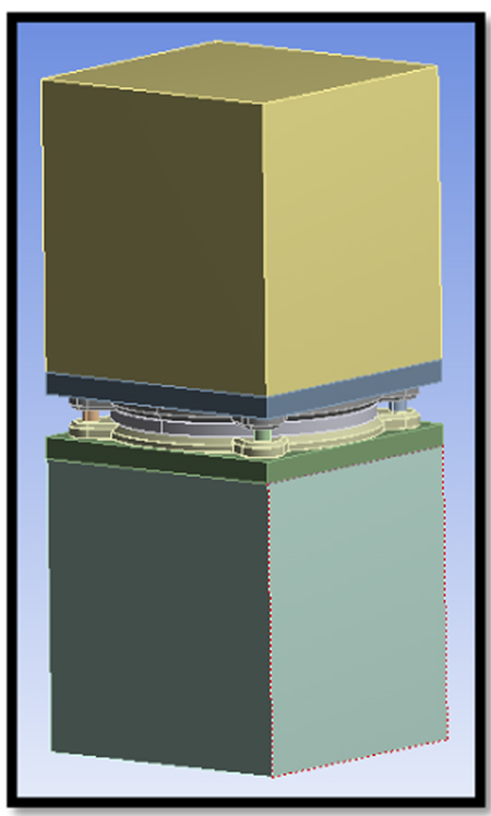 Fig. (17). Installation of top plate. - Placement of the upper bolts and plates: The upper bolts as upside down are prepared by fixing the isolator, in order that the isolator is assembled to the upper base. After the upper bolts are tightened, the upper plate, which is the same as the lower plate, is placed in the system and the isolator installation process finished (Fig. 17).