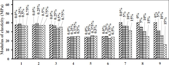 4. The young’s modulus of cement concrete declines with the increased amount of plastic fiber.
