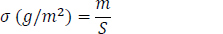 The surface mass σ was determined using the following formula in Eq (1):